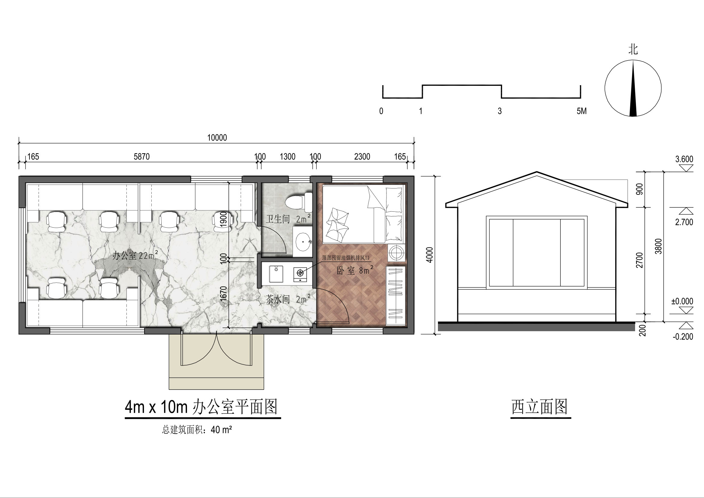 開間 10 m、 進(jìn)深 4 m、