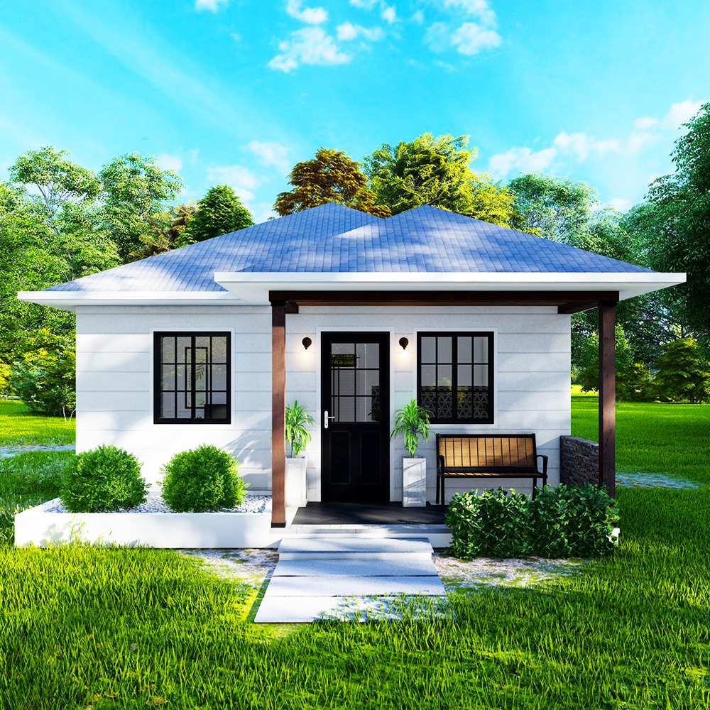 PLAN 6637 的基本信息 尺寸 寬 6.7m 深度 7m 面積(㎡) 1樓 46.9㎡ 建筑面積 46.9㎡ 總建筑面積 46.9㎡ 高度(米) 一樓 2.81m 總高度 4.37m 每戶 樓層 X1 臥室 X2 客廳 X1 浴室 X1 露臺 X0 車庫 X0 閣樓 X0